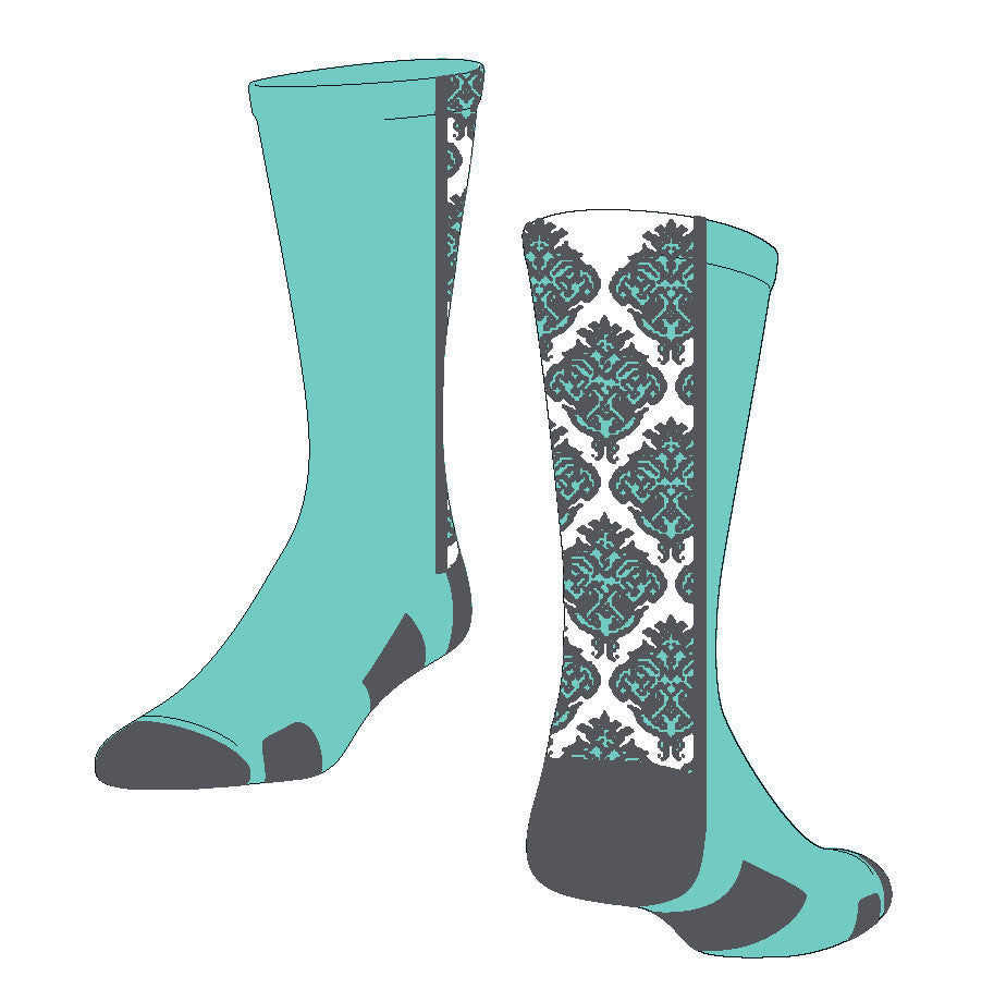 The Damask is a high performance crew or OTC (over-the-calf/knee) sock. It is perfect for corporate gifts, business promotion, or unique team item for a fundraiser, booster or spirit sales.