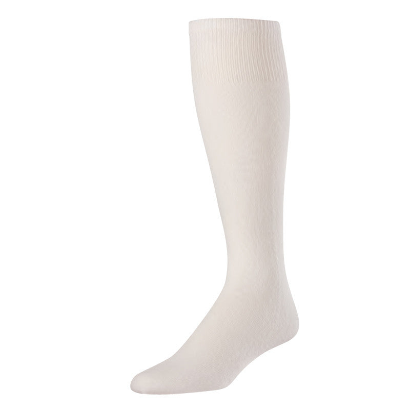 This basic white (only) cotton/nylon blend tube sock is knit thin and designed to be worn underneath our traditional stirrups (the higher the cut on the stirrup, the more the sock shows through).