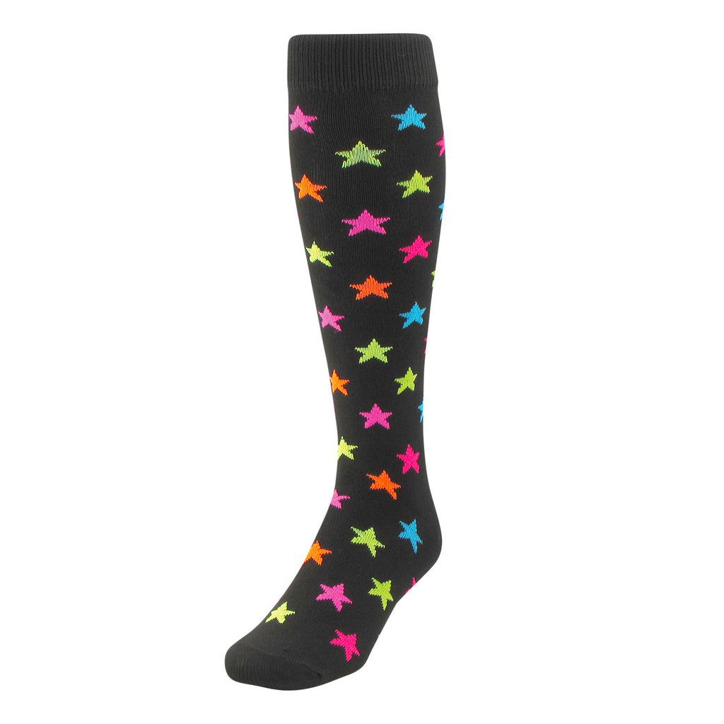 The Stars (Black) sock is a high performance heel and toe knee-high sock with heel-toe construction, and boasts ProDri® embedded antimicrobials for control with blistering, odor and moisture. This lightweight multi-sport sock is a fun animal patterned full sock with several color options...great for soccer, fastpitch and softball!