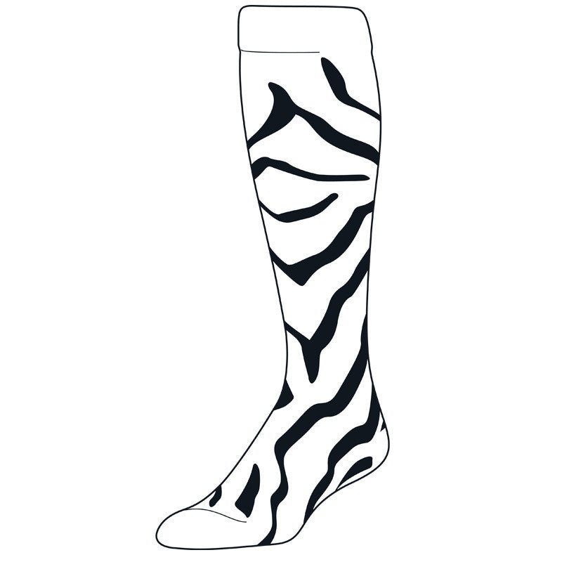 The Zebra sock is a high performance heel and toe knee-high sock with heel-toe construction, and boasts ProDri® embedded antimicrobials for control with blistering, odor and moisture. This lightweight multi-sport sock is a fun animal patterned full sock with several color options...great for soccer, fastpitch and softball!
